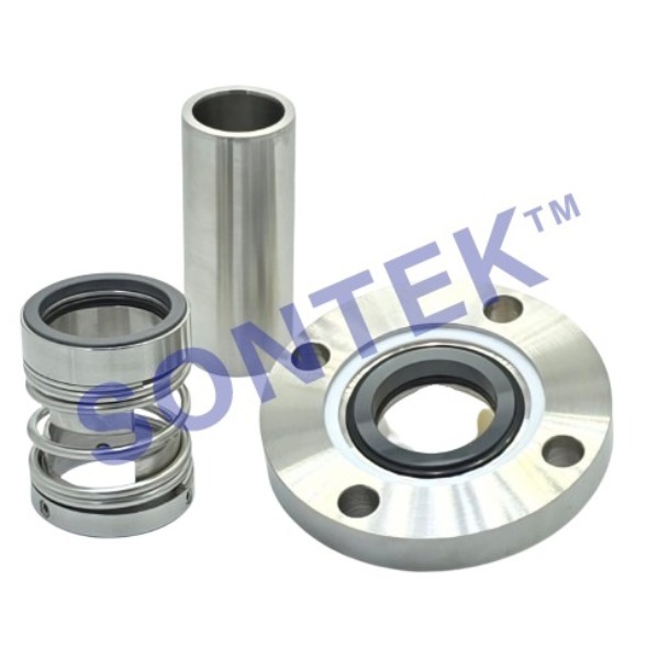 The single spring mechanical seal consists of a rotating seal face, stationary seat, single compression spring, elastomer secondary seals, and metal hardware components. The single spring mechanism provides uniform axial force, ensuring proper face contact and consistent sealing performance even under moderate pressure and temperature variations.